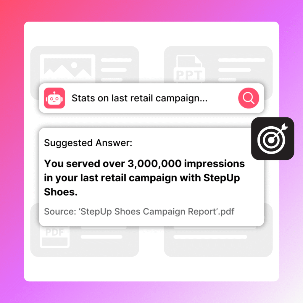Ask anything—Genpitch pulls answers straight from your content library, showing sources and knowing only your company’s material.